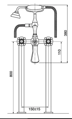 Nostalgische Bad douche mengkraan op zuilen - hoogte 80 cm