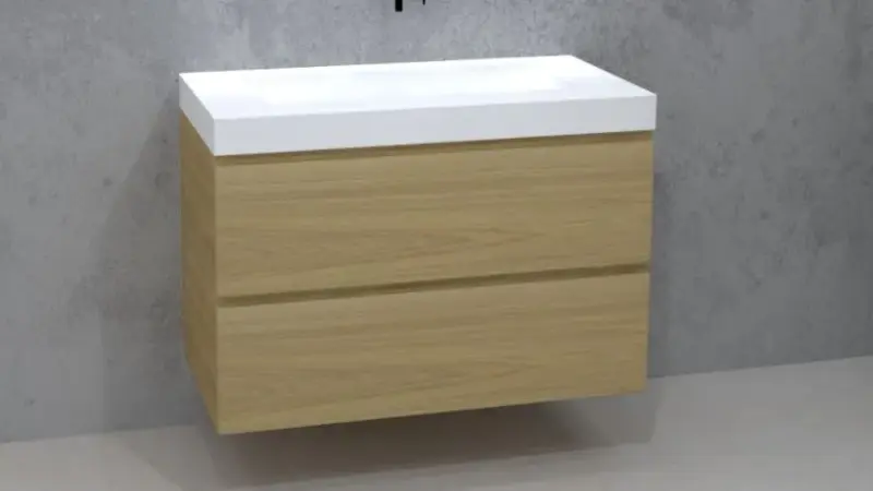 TopLine Amsterdam massief eiken badmeubel 100x50x60cm met 2 lades onder elkaar kleur Mist met greeploze en softclose laden