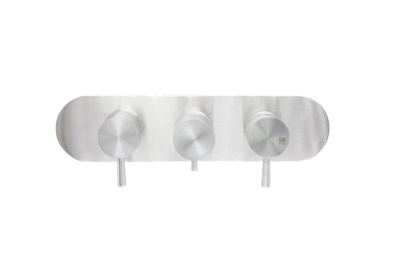 Met twee afzonderlijke stopkranen bedien je de aangesloten wateruitgangen onafhankelijk van elkaar, zoals een hoofddouche en handdouche. Dit biedt optimale flexibiliteit en controle over comfort en waterverbruik. De bediening gebeurt via elegante hendelgrepen, terwijl de vierkante afdekrozet van 80 x 80 mm zorgt voor een strakke, moderne wandafwerking.