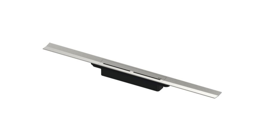 Deze nieuwe douchegoot van TECE is zelf op maat te zagen, kan zowel tegen de wand als vrij in de vloer geplaatst worden.