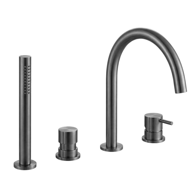 Waterevolution Flow 4-gats Badkraan voor Badrandmontage volledig PVD Gun Metal T138GME